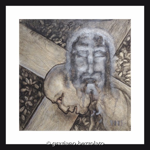 Quindici quadri, un percorso della Via Crucis che intreccia con il tema attuale della Sindone, che, come racconta l’autore, pittore, grafico e fotografo: “Mi ha sempre attratto ed emozionato quel volto impresso sulla tela di un uomo giustiziato”.