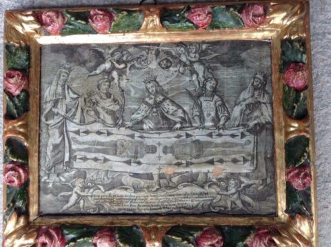 Per saperne di più...La stampa è realizzata (da sconosciuto) su un delicattisimo tessuto di seta. Al centro della composizione il Beato Amedeo...