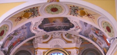 Per saperne di più...Sulla volta absidale della piccola cappella dell’Addolorata si scorge, nella quadratura centrale della composizione, una raffigurazione di un lenzuolo...